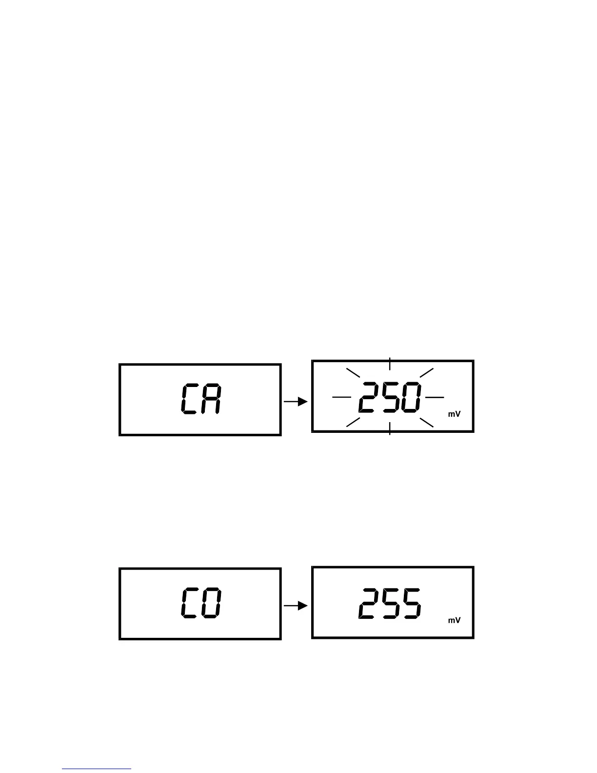 3. Press CAL key to enter mV calibration. The LCD shows “CA” momentarily before