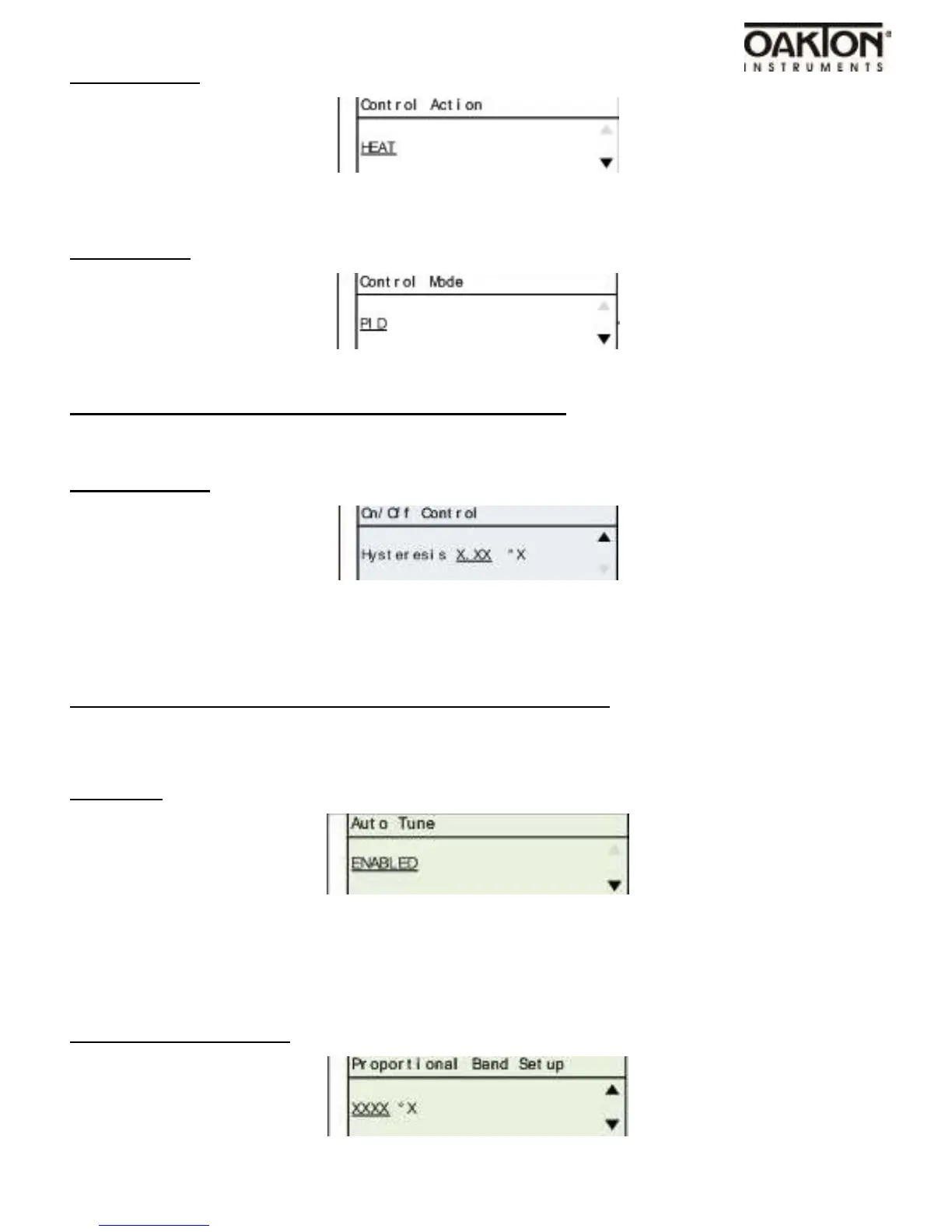 Default setting is PID. Use arrow keys to change to ON / OFF.