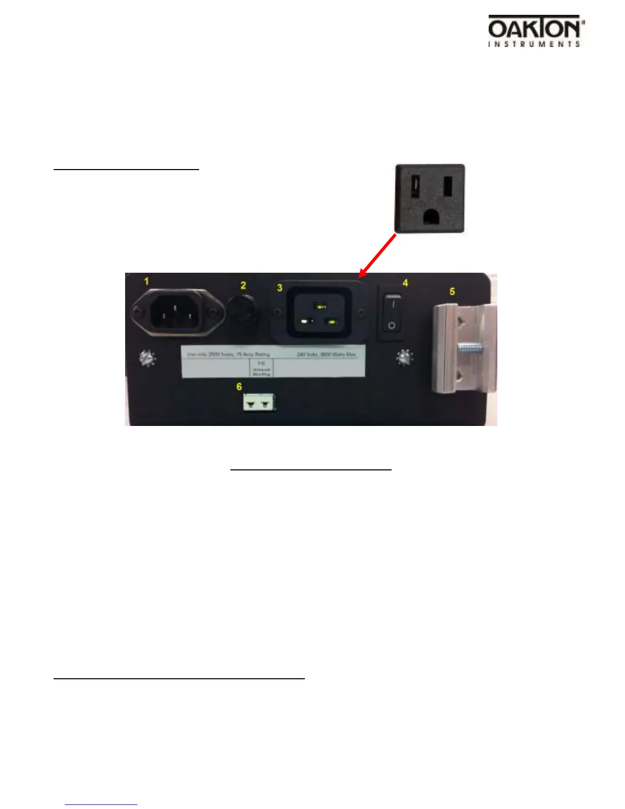 3. Heater/Cooler output (IEC 60320 on 230 volt, 5-15R on 115 volt) see page 24, 25 for op-