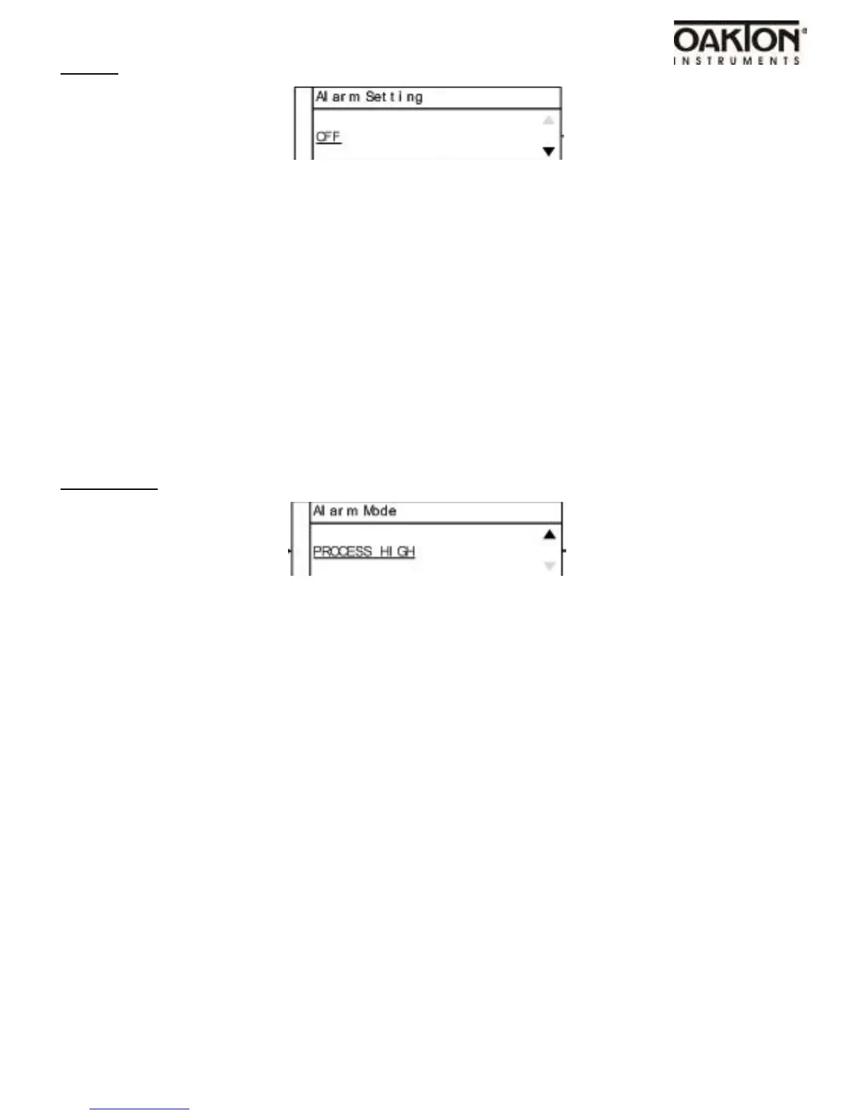 Process Low: The alarm will be activated if the process value goes below the user set alarm