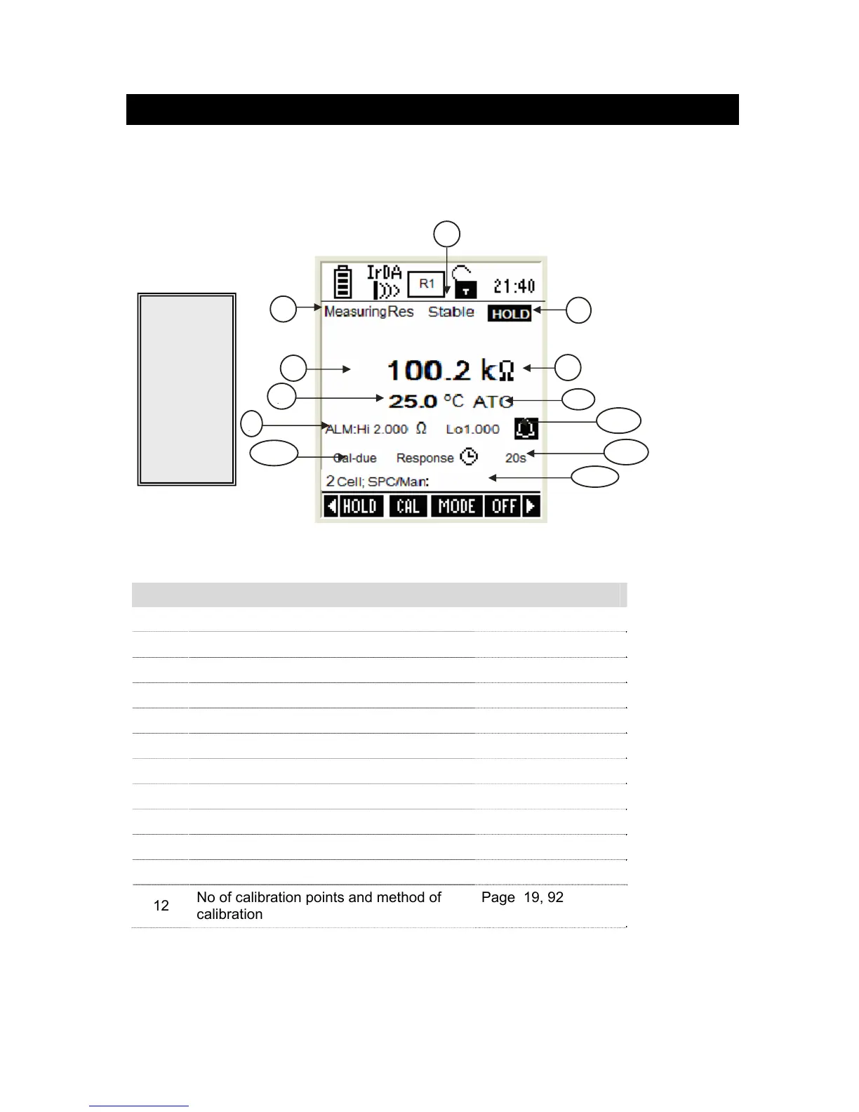 In Resistivity measurement mode, the meter displays resistivity and temperature