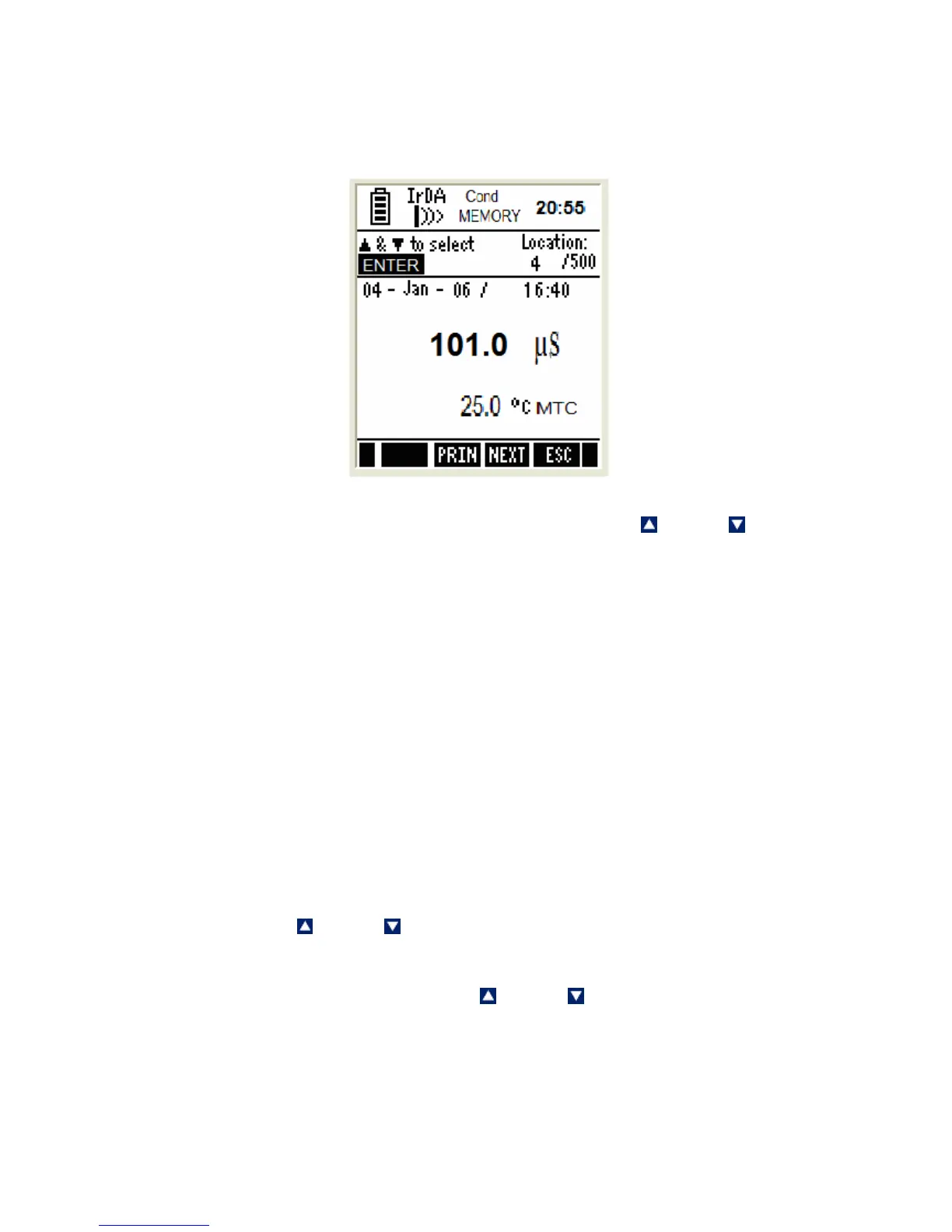 4. To navigate to a particular memory location, press up or down arrow