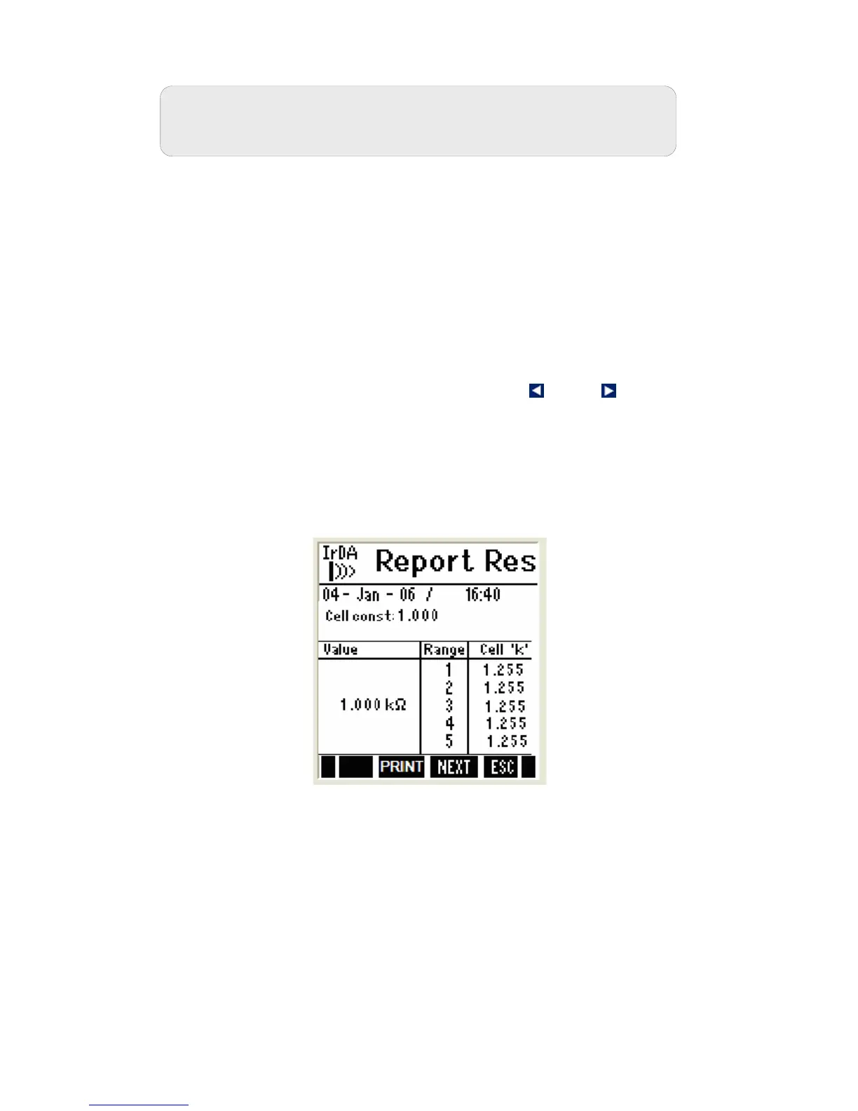 2. Press REPO (F2) key. The calibration report is shown in the display [Figure