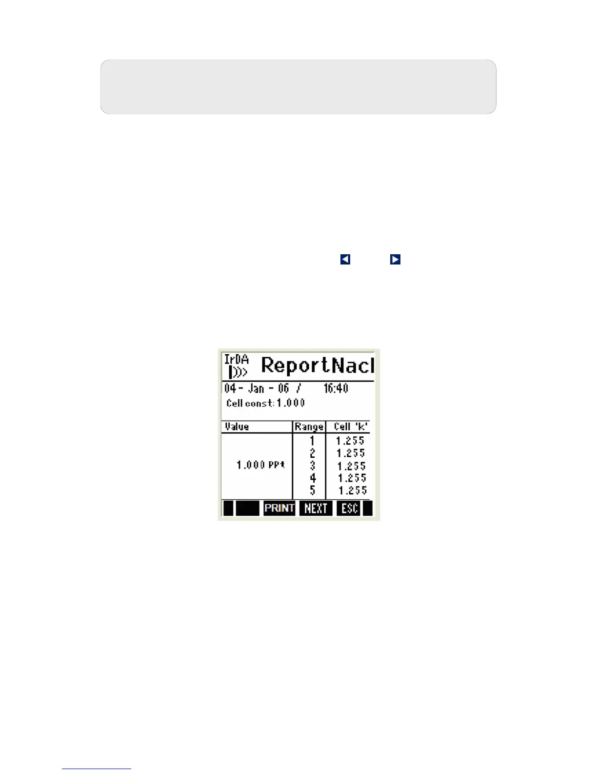 2. Press REPO (F2) key. The calibration report is shown in the display [Figure