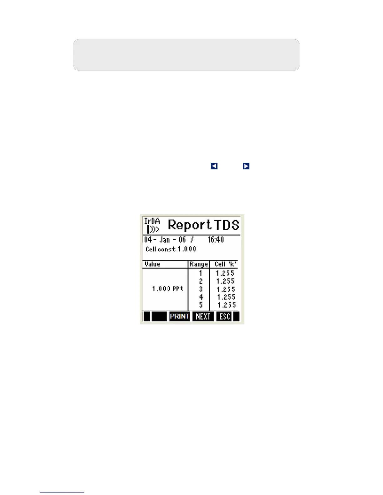 9. Press ESC (F4) to go to measurement mode. The meter shows the TDS