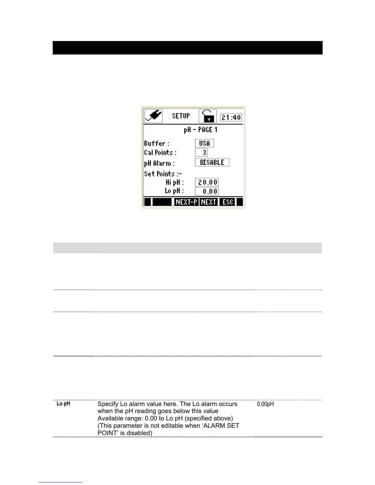 pH setup sub-group allows you to configure pH measurement & calibration related