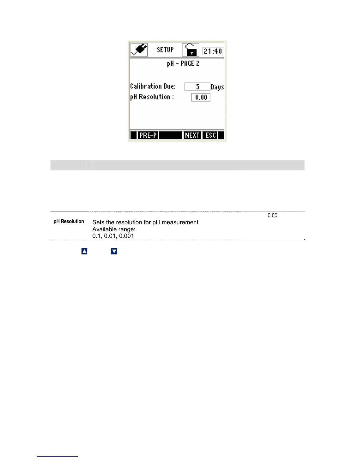 ) Press (Up) or (Down) arrow key to change pH measurement & calibration