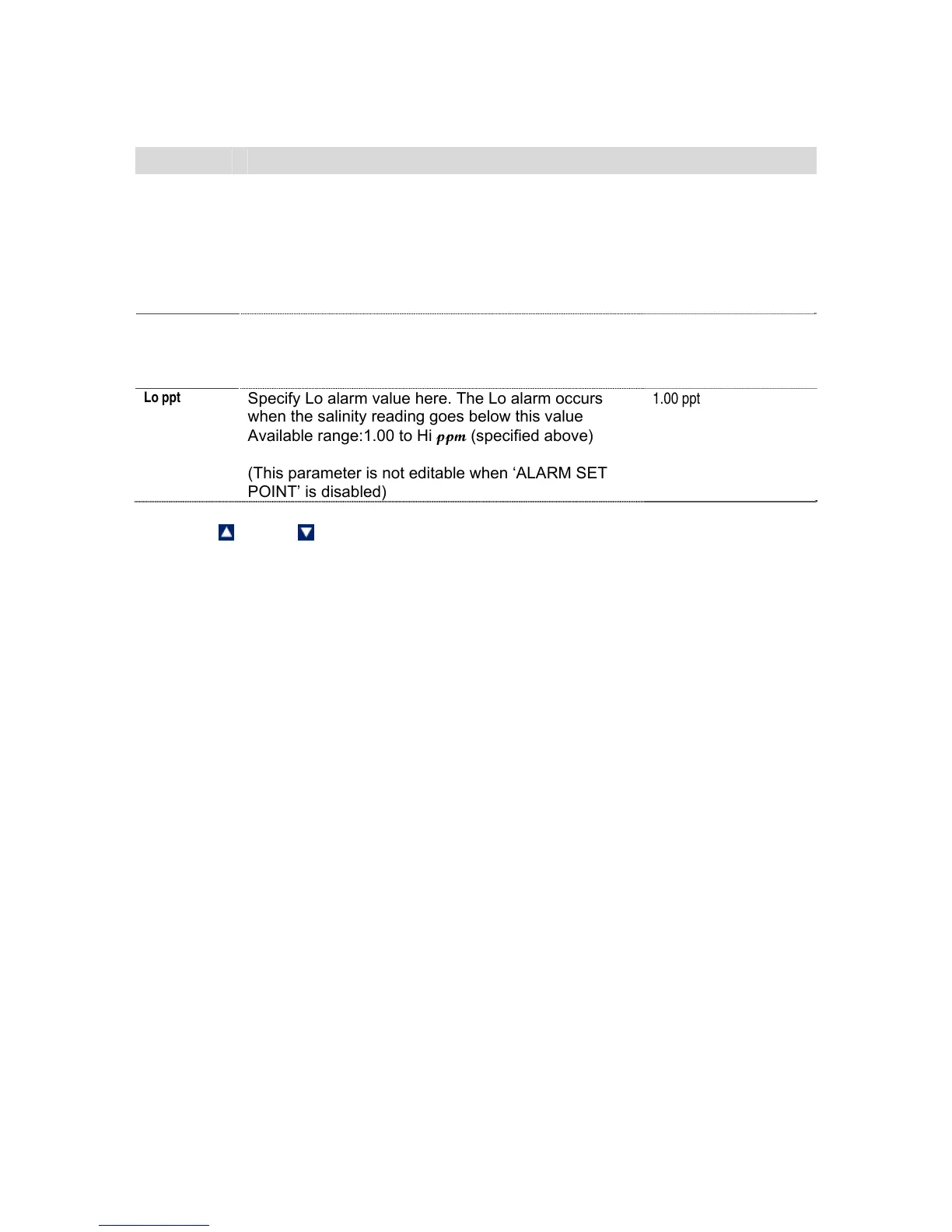 ) Press (Up) or (Down) arrow key to set high or low alarm point.