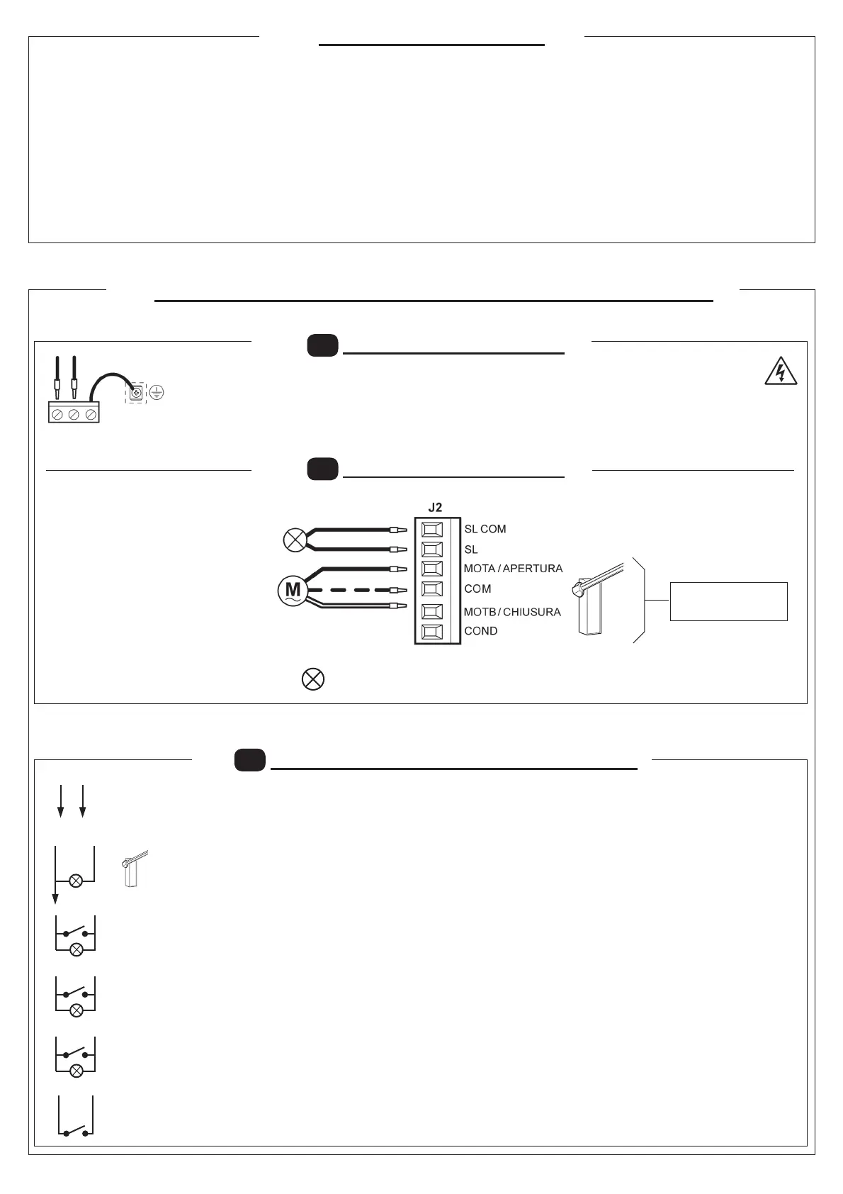 4) Check the effectiveness of the grounding system and connect to it all the parts of the automation fi tted with a terminal or grounding