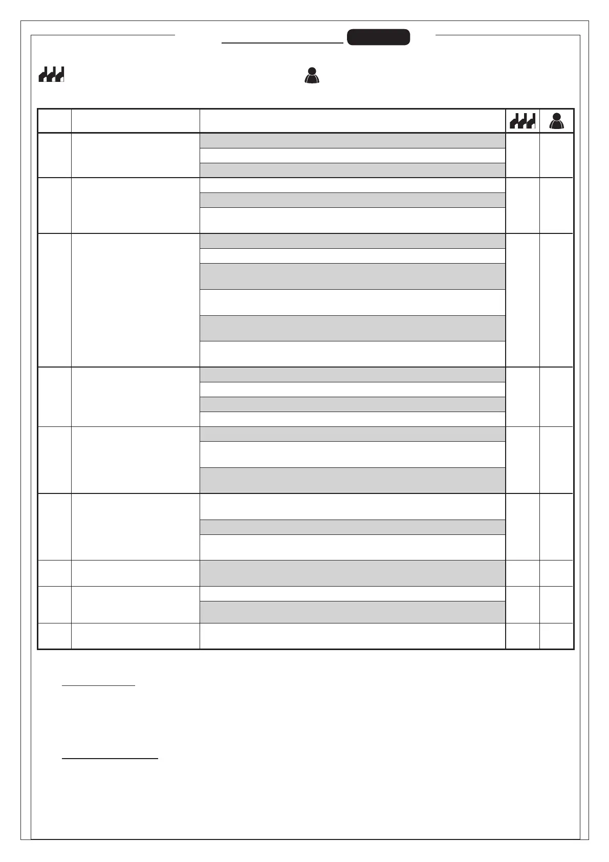 In der nachfolgenden Tabelle sind die Funktionen der 1. Stufe und die einzelnen einstellbaren Parameter aufgeführt.