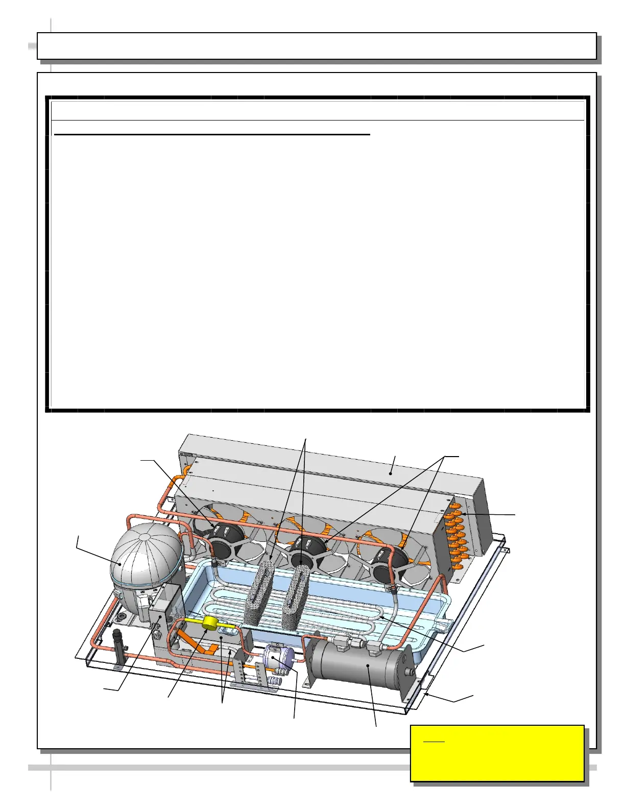 • Use mild all-purpose cleaner and soft cloth to clean fans, sight glass, overflow pan, etc.