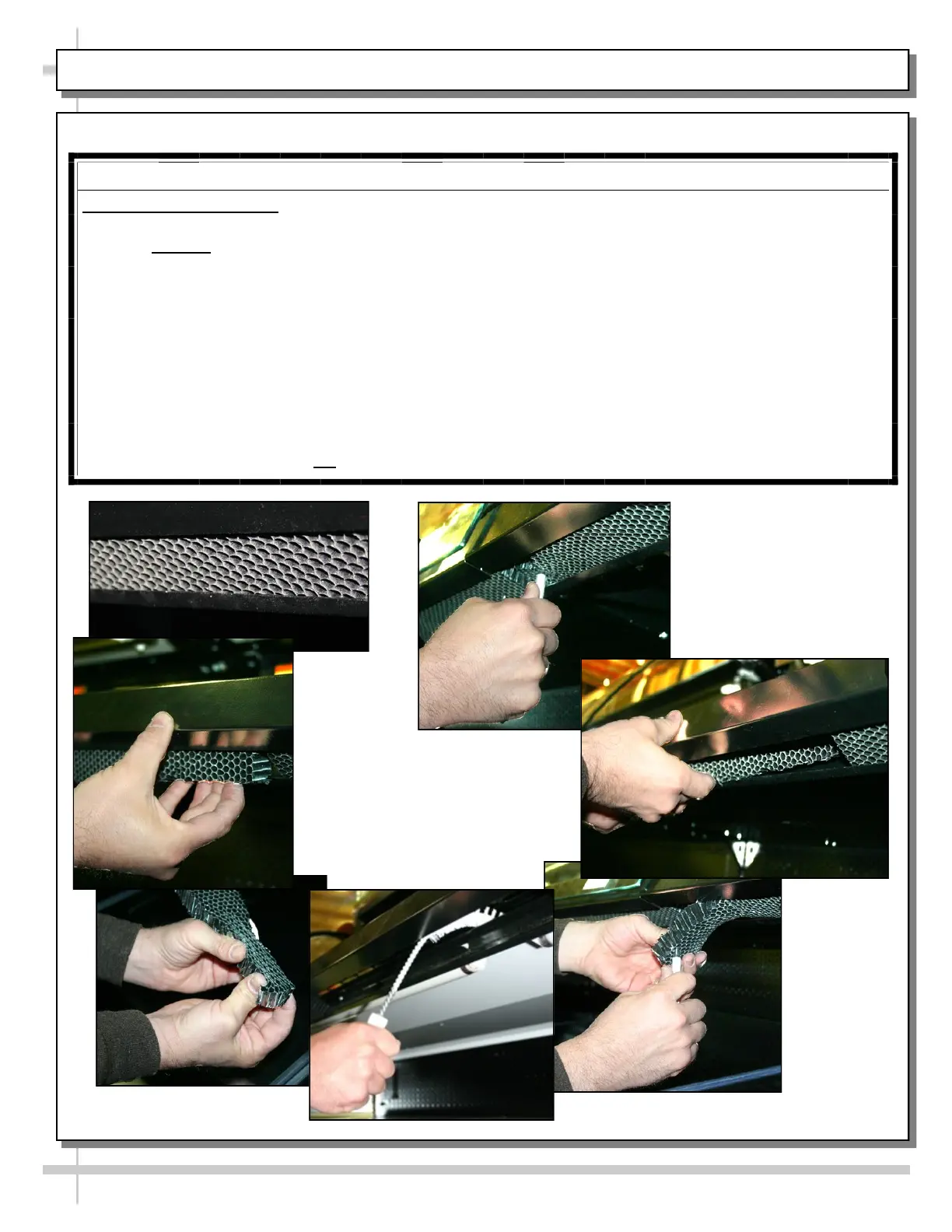 G. Adjust honeycomb so it fits flat against retainer (not be wavy or out of position).