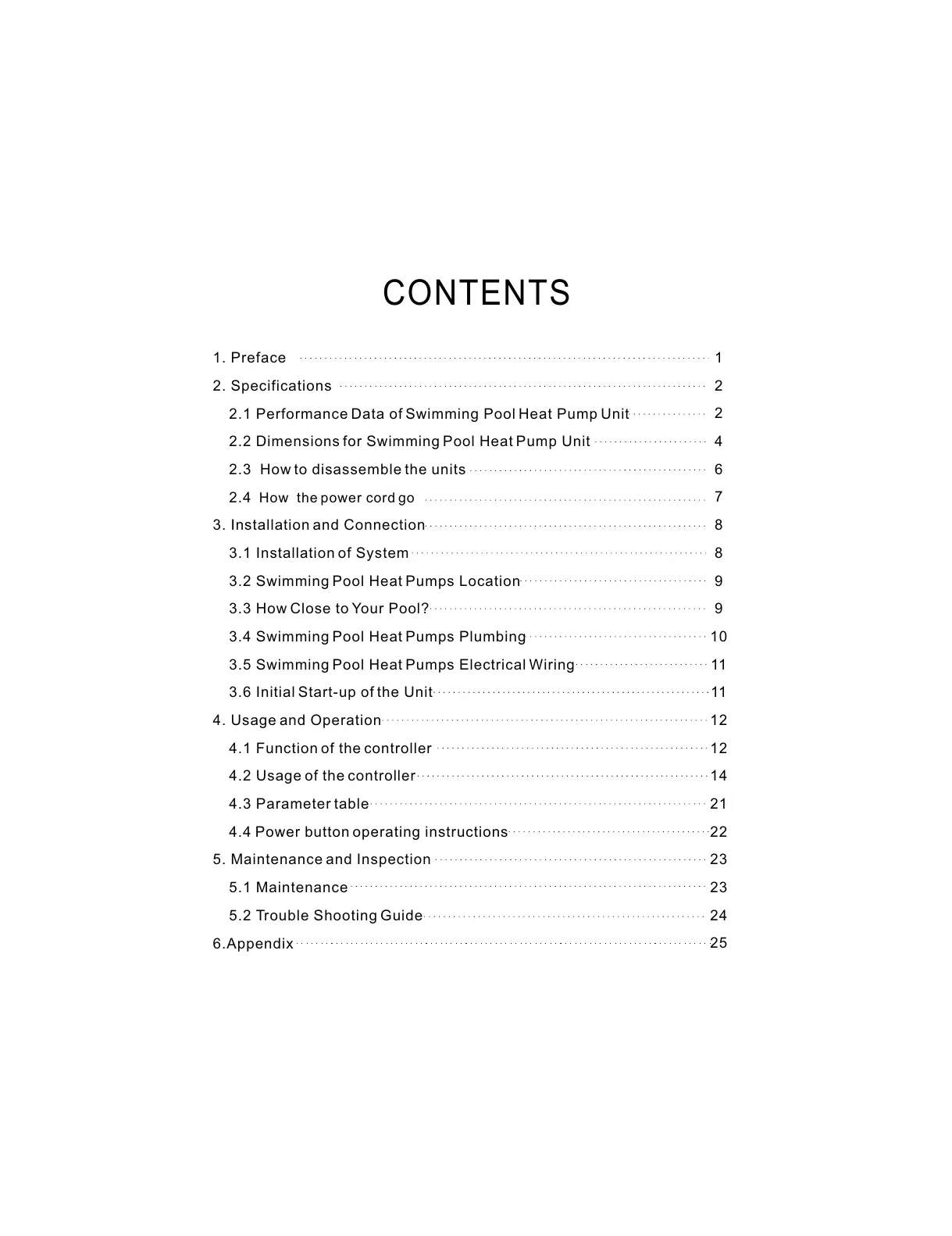 2.1 Performance Data of Swimming Pool Heat Pump Unit