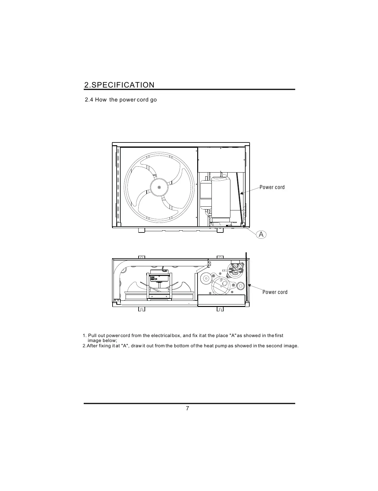 After fixing it at "A", draw it out from the bottom of the heat pump as showed in the second image.