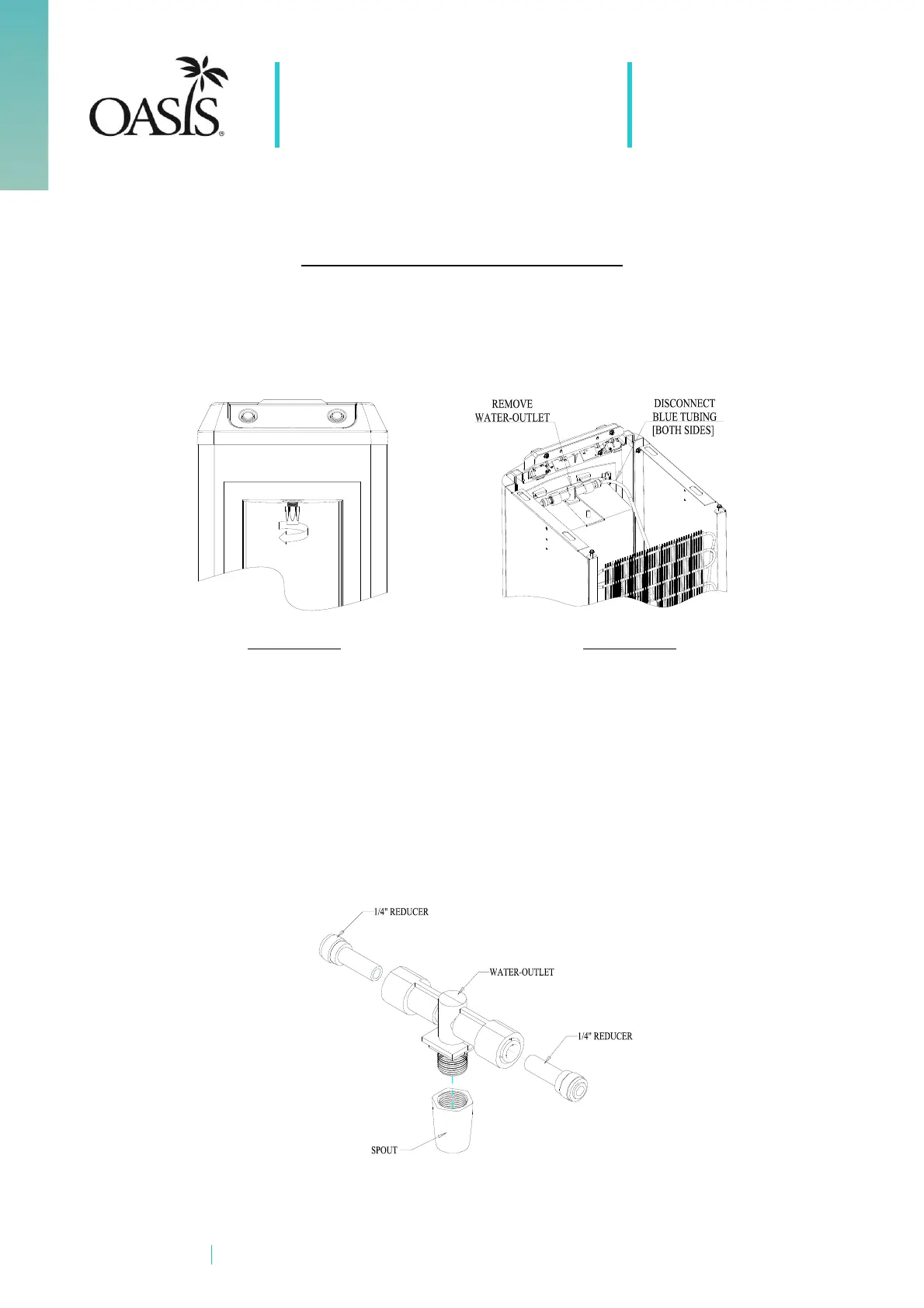 • Remove blue tubing between water outlet and solenoids on cook and cold sides. (Diagram