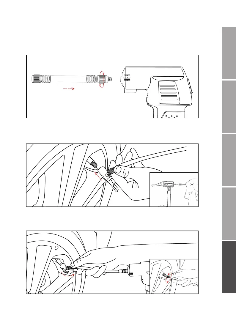 2. Connectez le tuyau à air à la valve de la voiture ou à l’adaptateur.