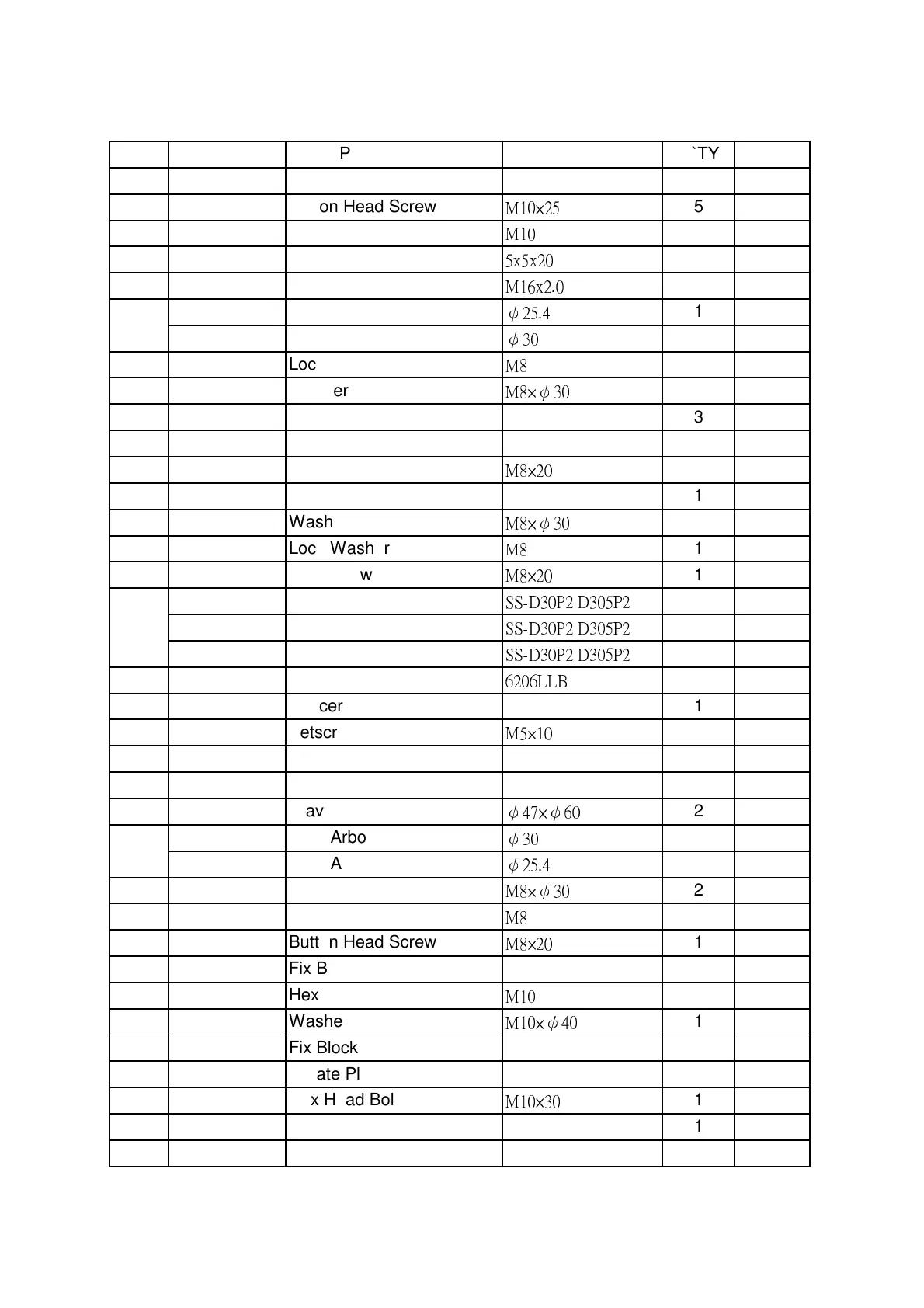 SIZE Q`TYPARTS NAME