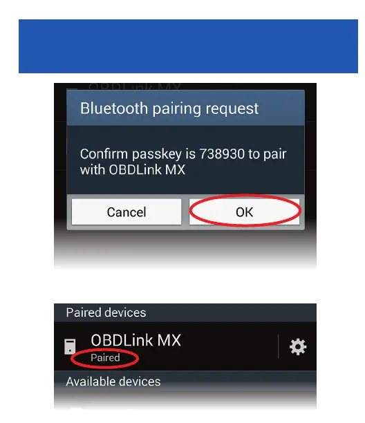 OBDLink MX Bluetooth - Confirm Bluetooth Pairing; Approve Pairing Request; Verify Paired Device Status