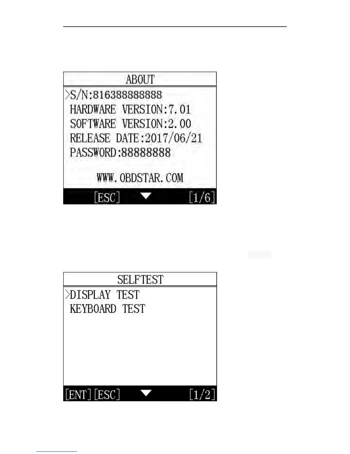 Device self-test includes screen display, keyboard testing. hardware self-