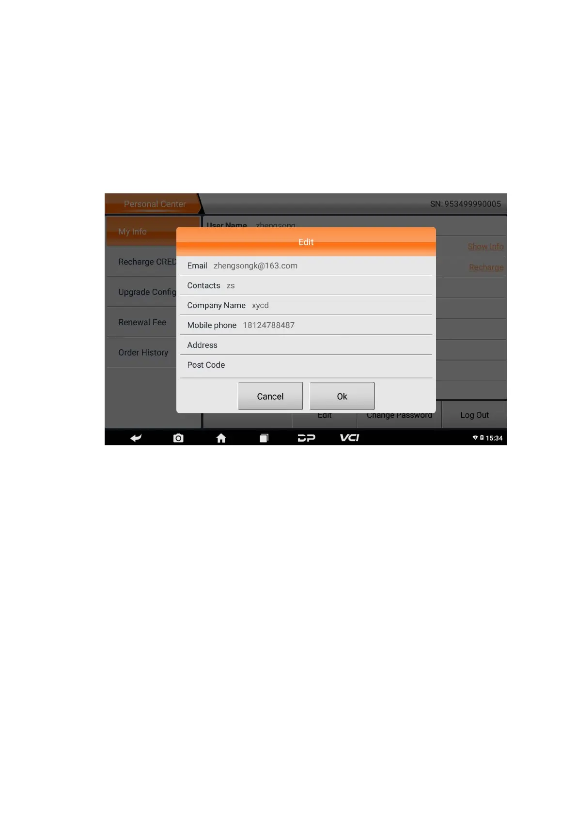 Obdstar MS80 - Account Information Management; Modify Personal Information; Change Account Password
