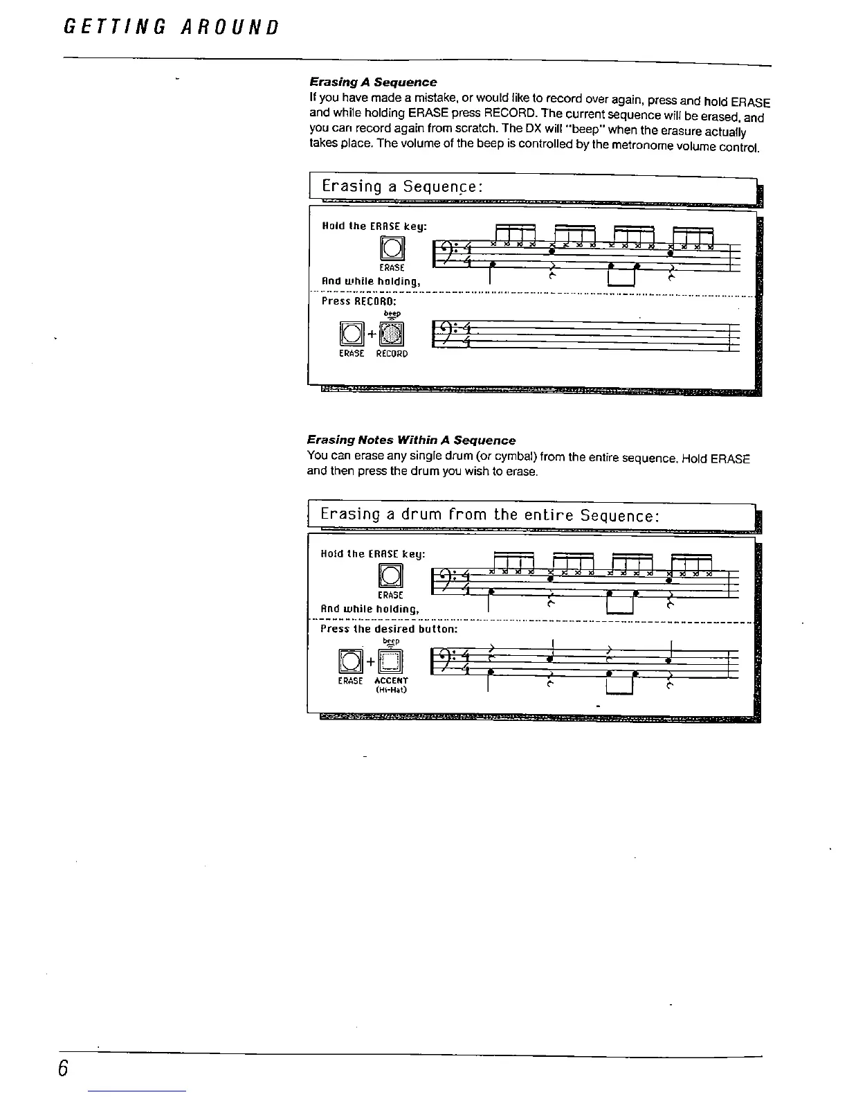 and while holding ERASE press RECORD. The current sequence will be erased, and
