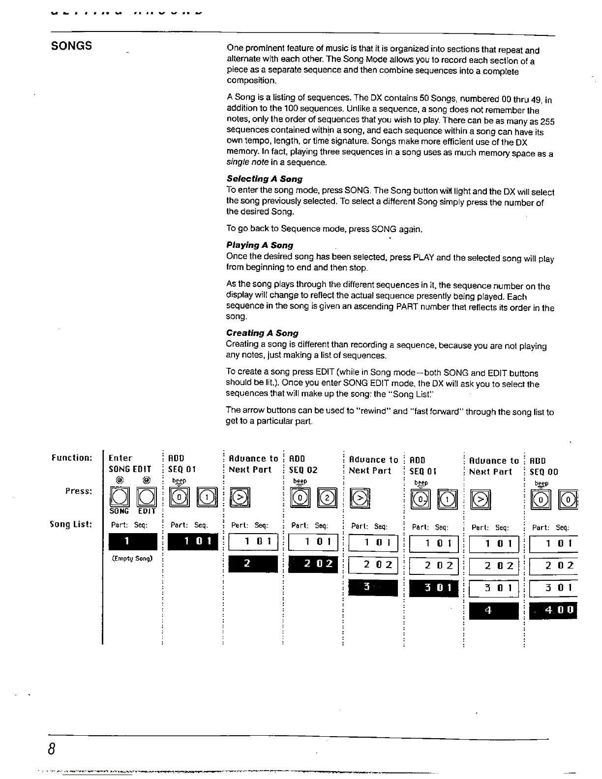 A Song is a listing of sequences. The DX contains 50 Songs