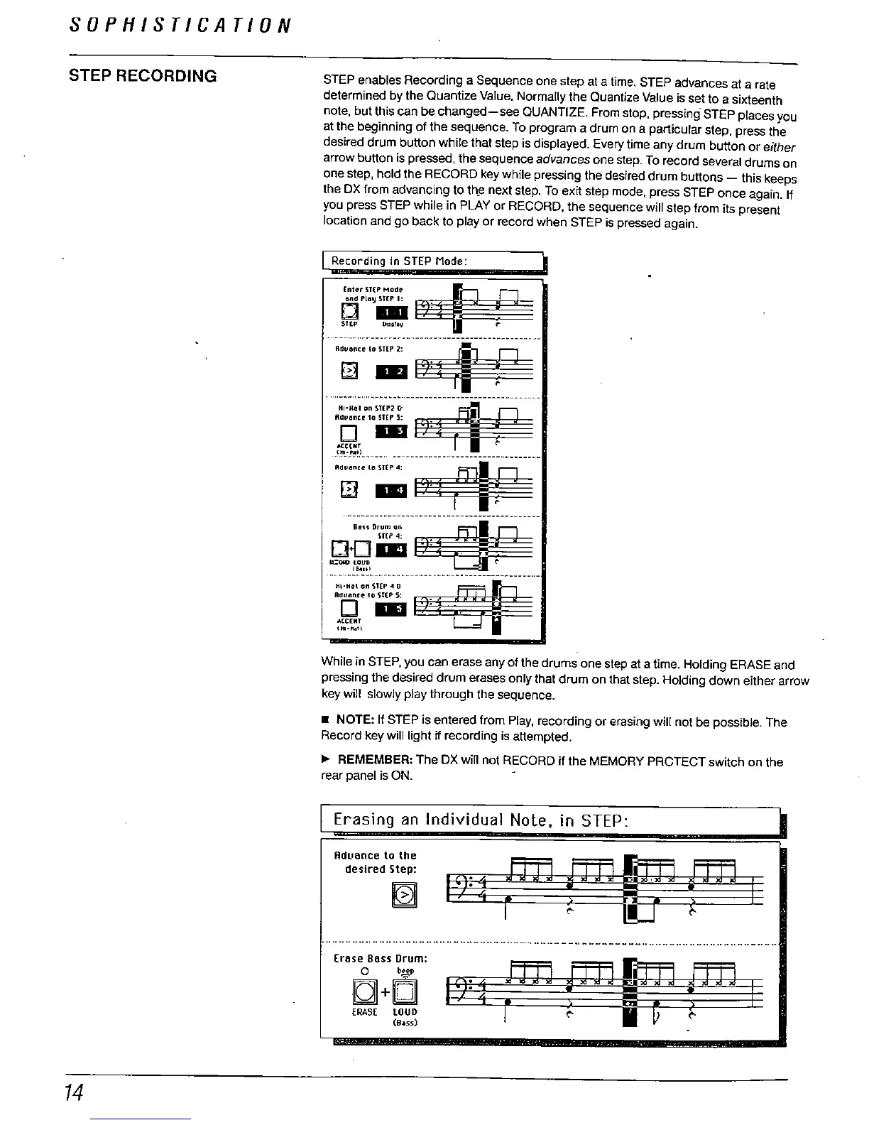 one step, hold the RECORD key while pressing the desired drum buttons