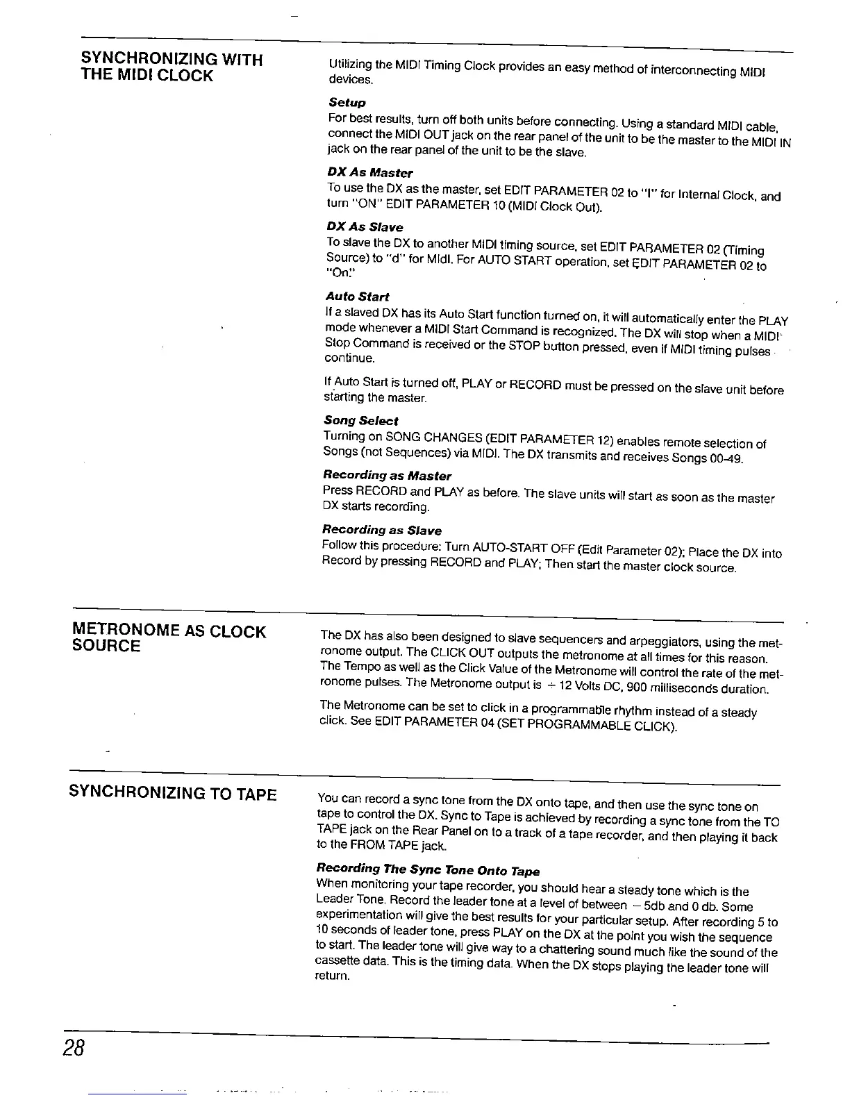 tape to control the DX. Sync to Tape is achieved by recording a sync tone from the TO