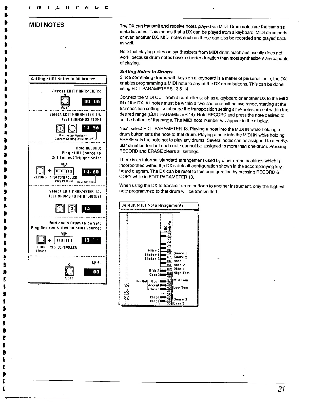 or even another DX. MIDI notes such as these can also be recorded andplayed back