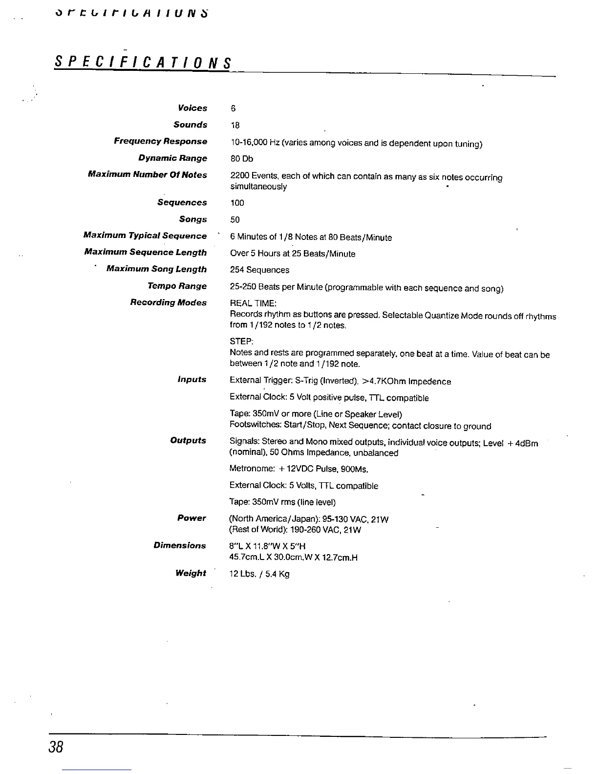 25-250 Beats per Minute (programmable with each sequence and song)