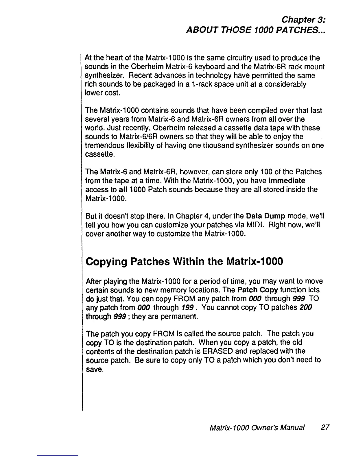 Oberheim Matrix-1000 - Chapter 3: Understanding the Patches; Patch Copy Function