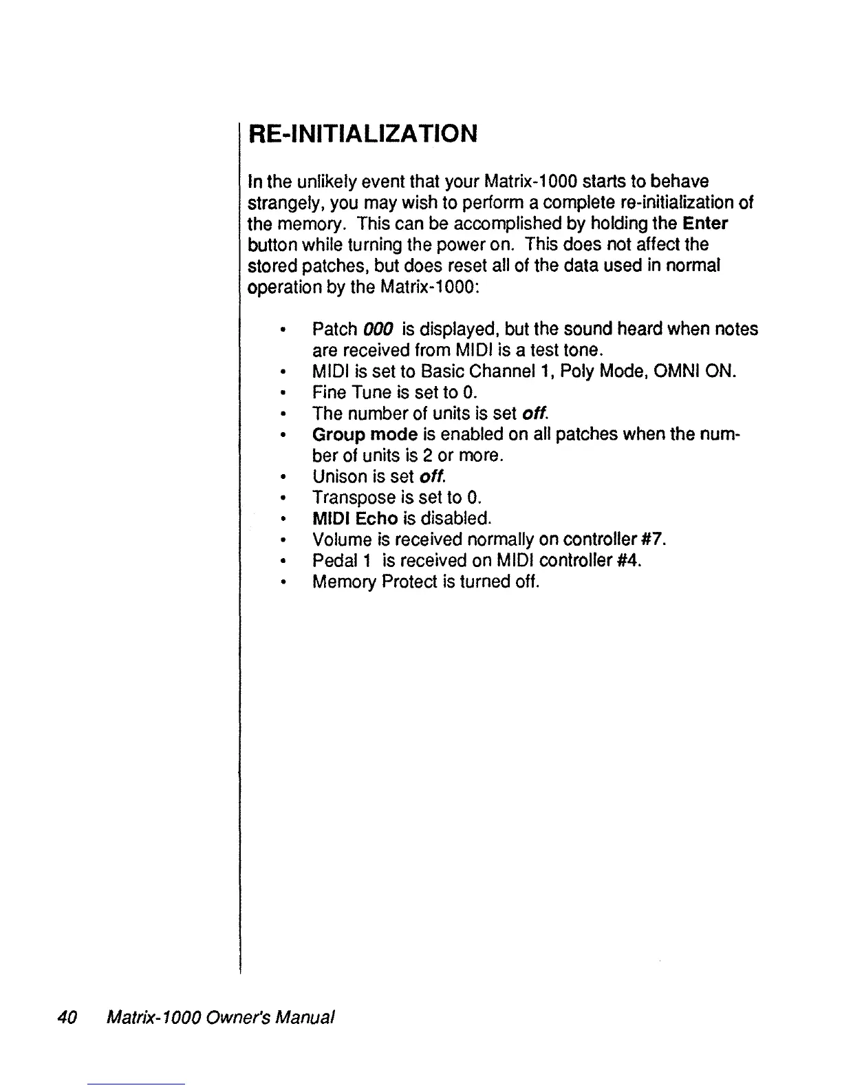 Oberheim Matrix-1000 - Re-Initialization Procedure