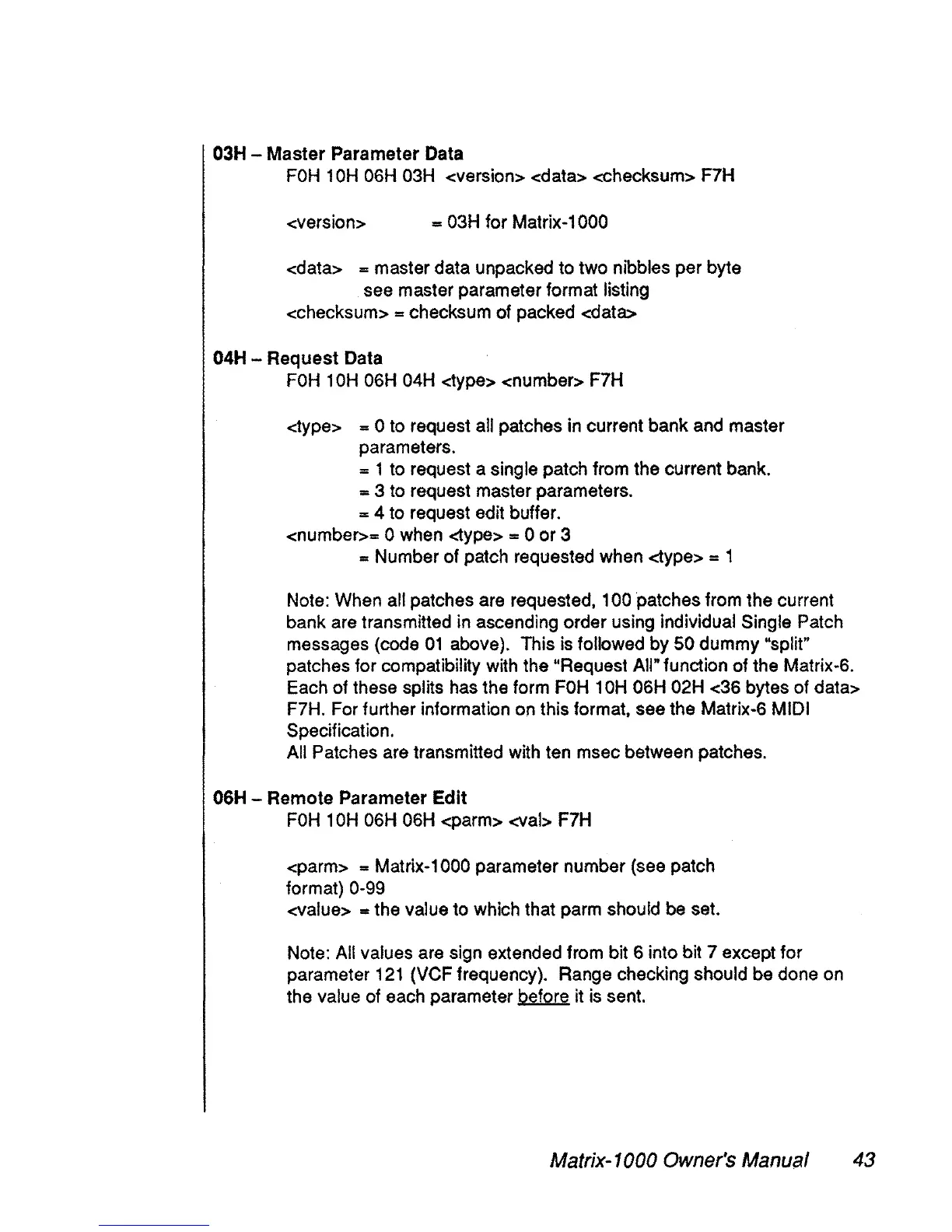 Matrix-1000 Owner's Manual 43