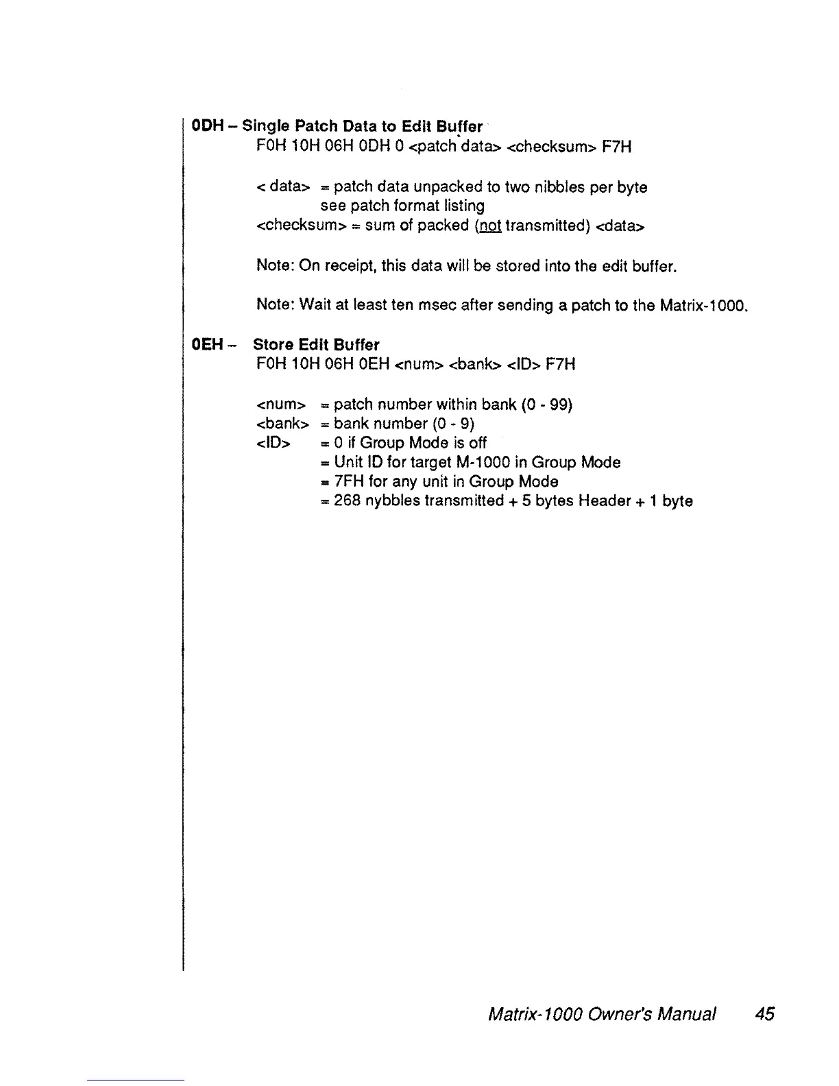 Note: Wait at least ten msec after sending a patch to the Matrix-1 000.
