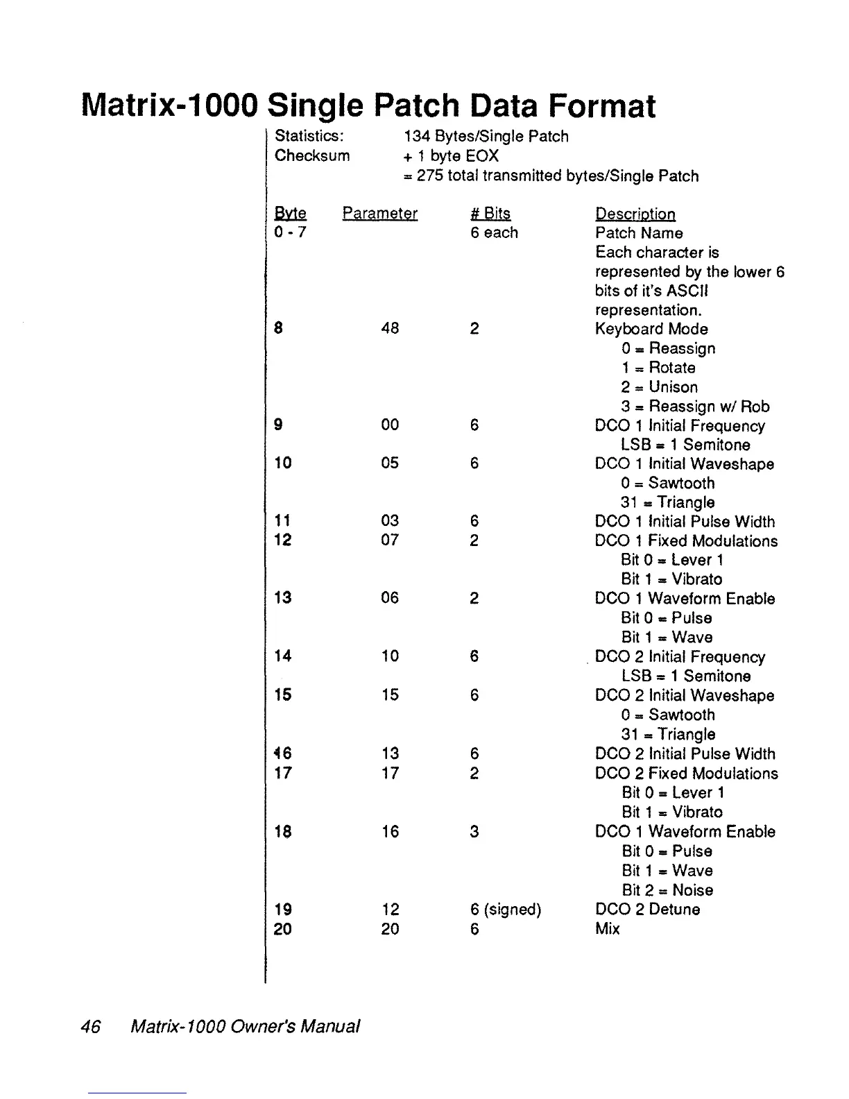 Oberheim Matrix-1000 - Matrix-1000 Single Patch Data Format