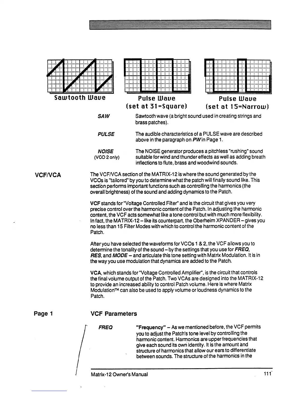 Oberheim Matrix-12 - Vcf;Vca; VCF Parameters; Freq - Frequency