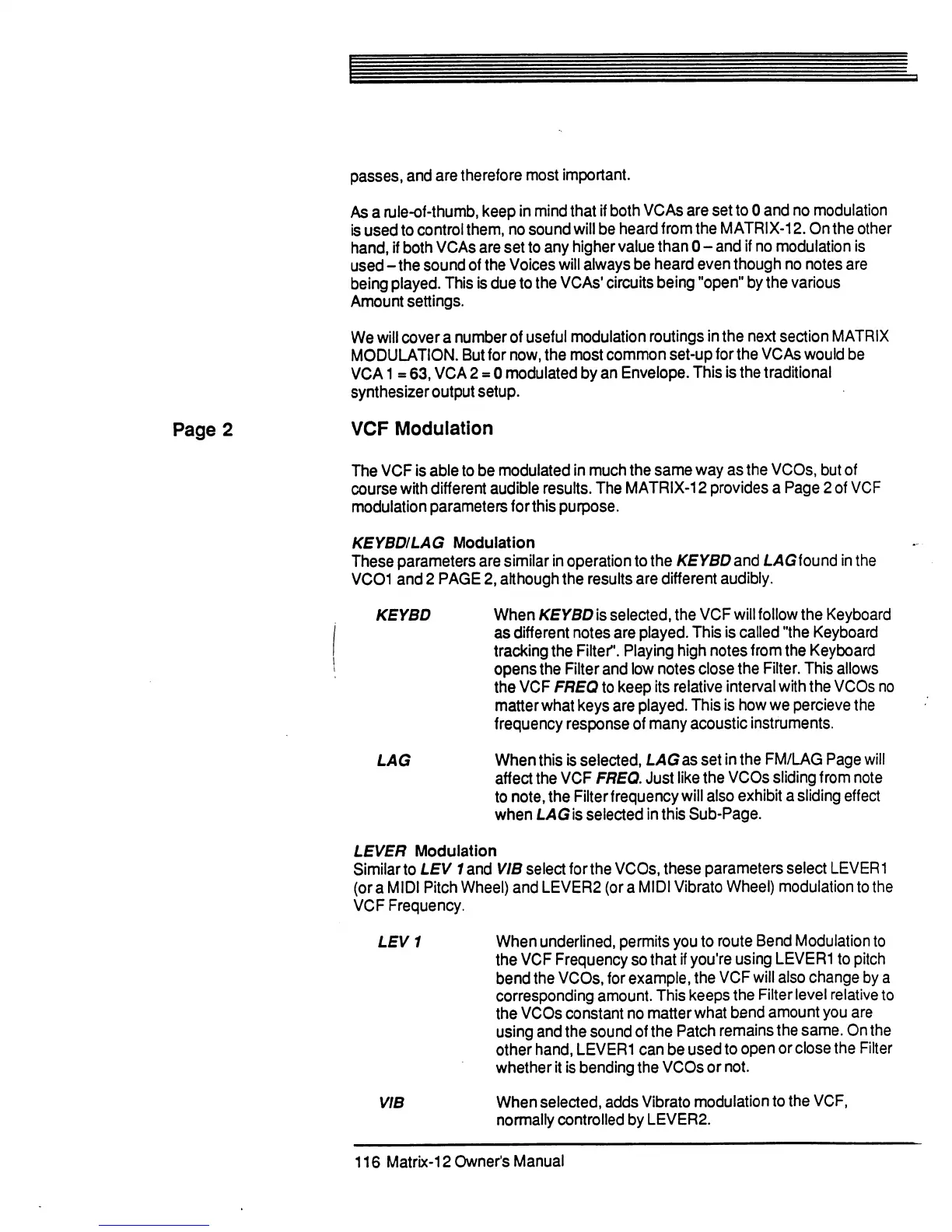 Oberheim Matrix-12 - VCF Modulation; KEYBD;LAG Modulation; LEVER Modulation