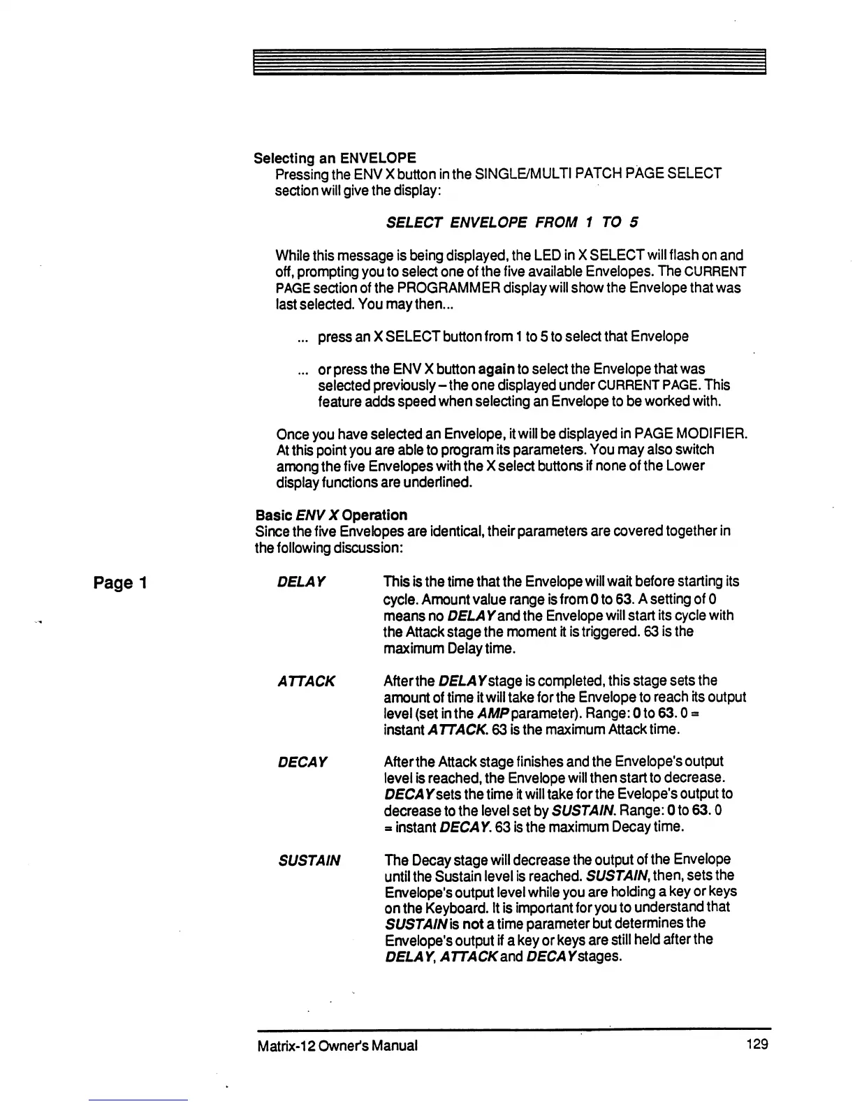 Oberheim Matrix-12 - Selecting an Envelope; Basic ENV X Operation