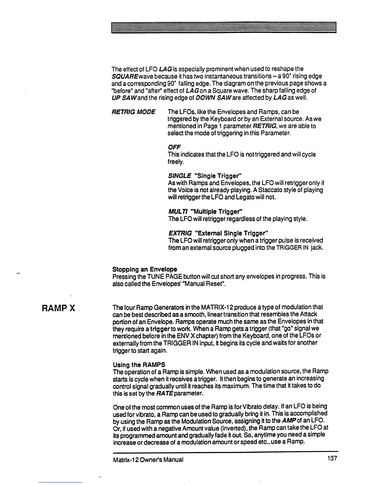 Oberheim Matrix-12 - Ramp X; Retrig Mode; Stopping an Envelope