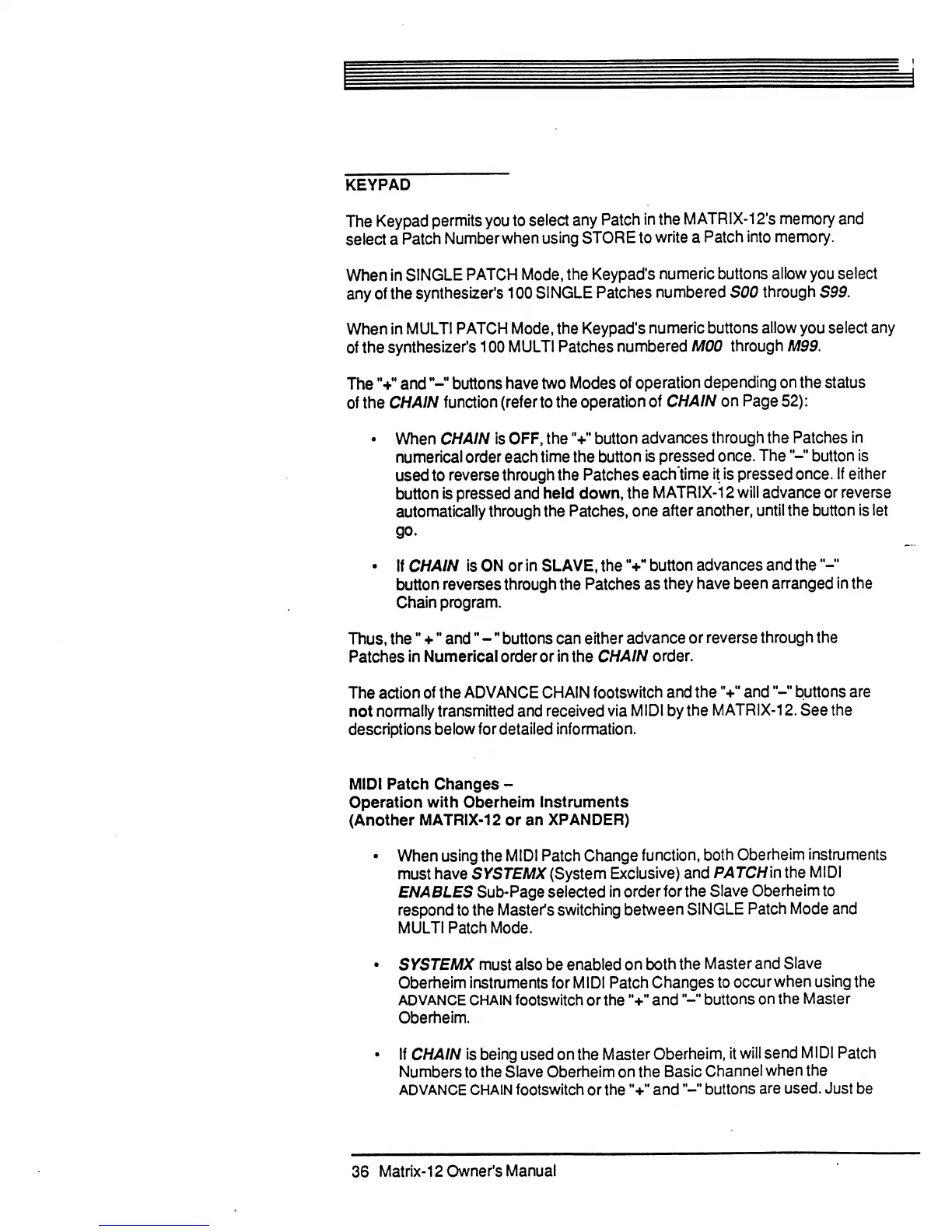 Oberheim Matrix-12 - Keypad; MIDI Patch Changes