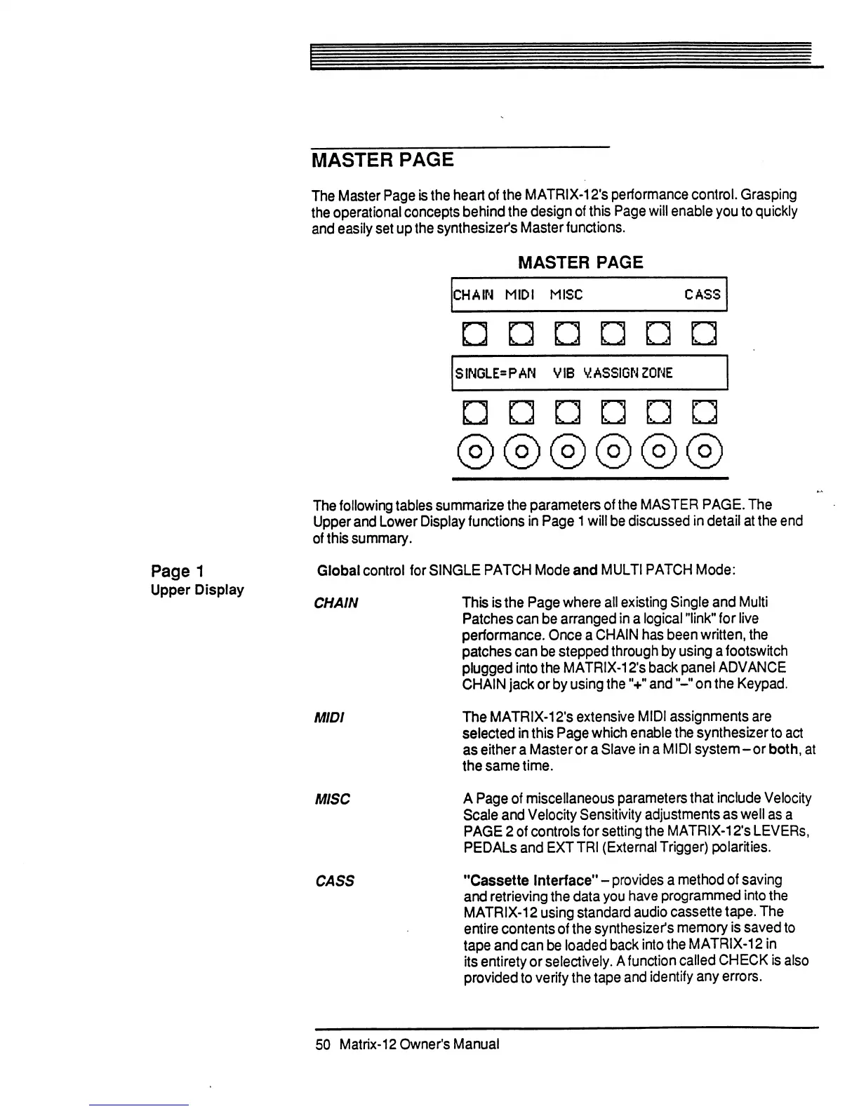 Oberheim Matrix-12 - Master Page Overview; Page 1