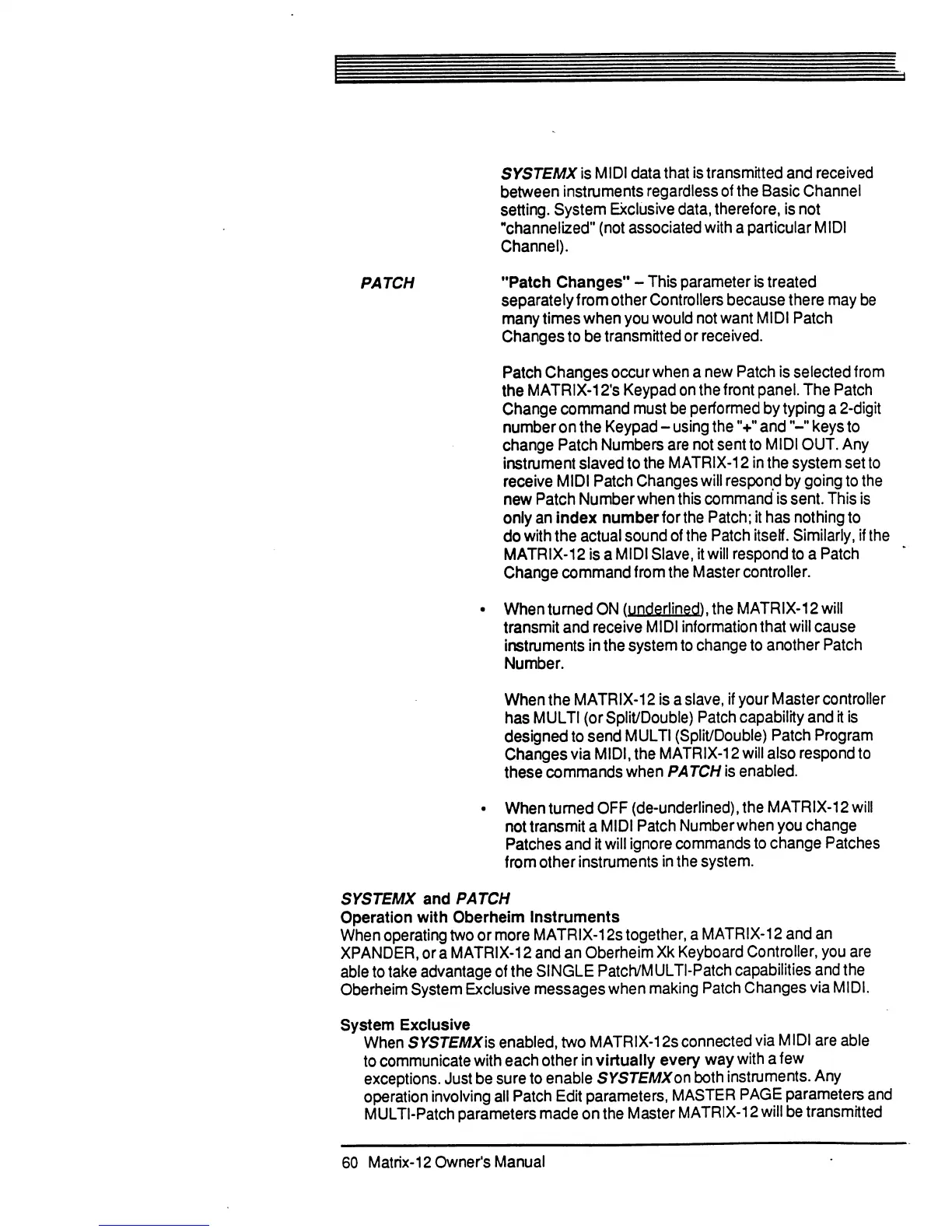 Oberheim Matrix-12 - Patch - Patch Changes; Systemx and Patch; System Exclusive