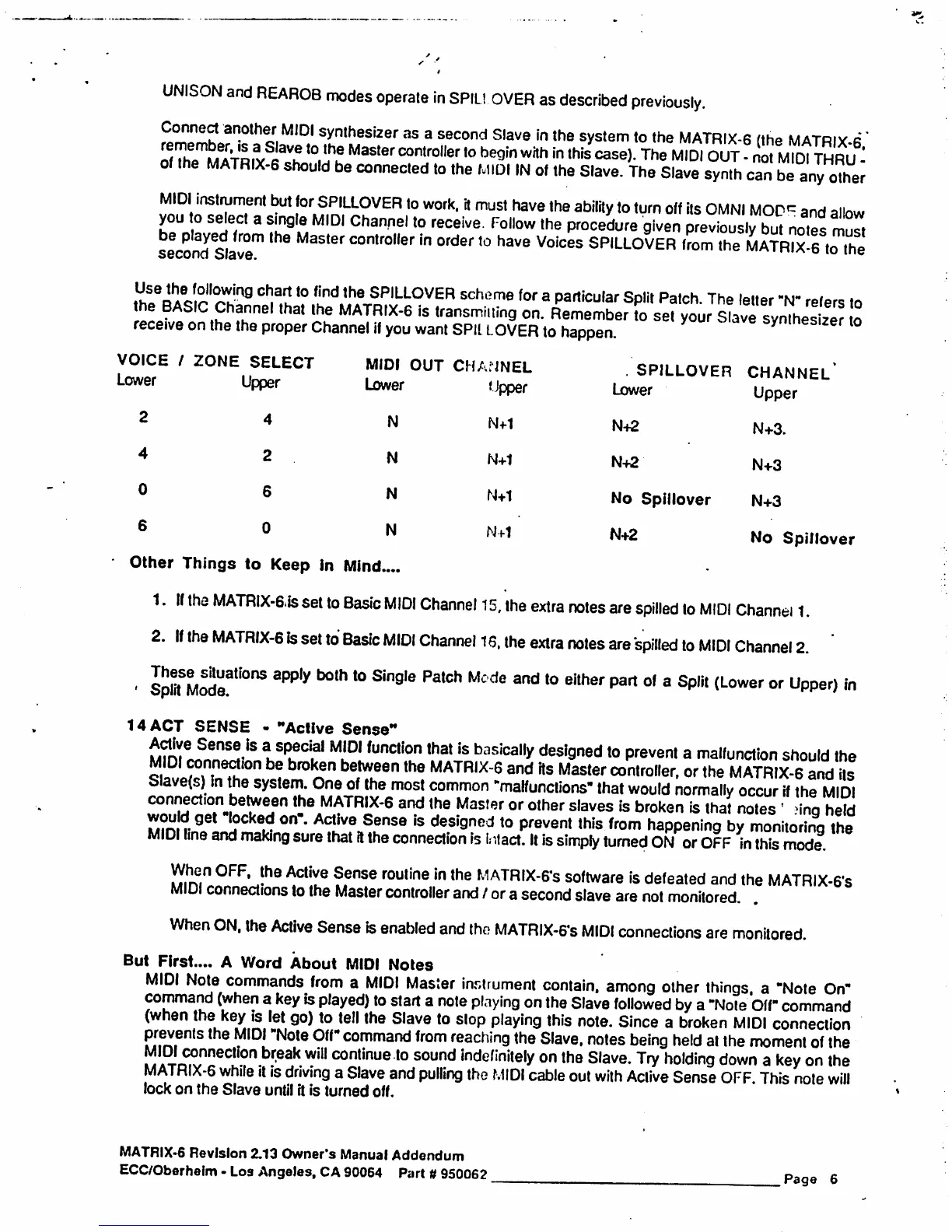 Oberheim Matrix-6 - 14 ACT SENSE - Active Sense