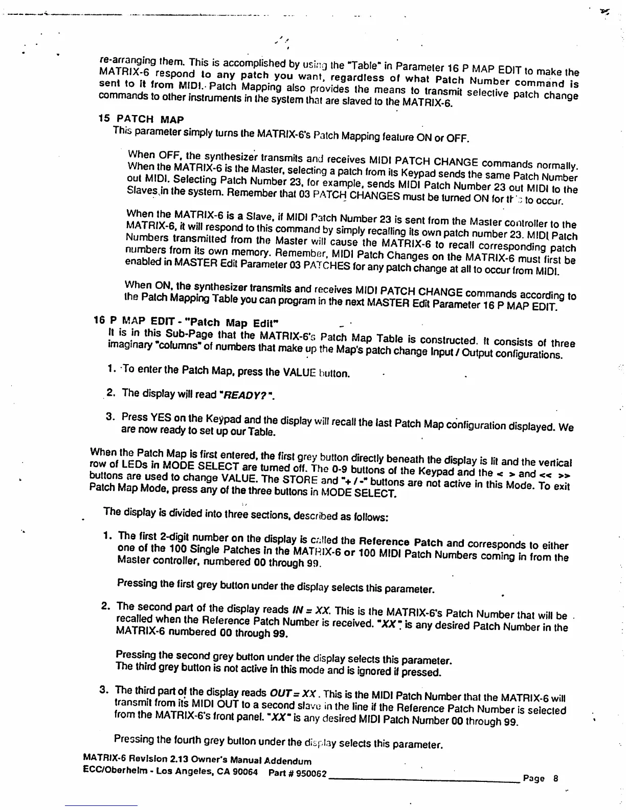 Oberheim Matrix-6 - 15 PATCH MAP; 16 P MAP EDIT - Patch Map Edit