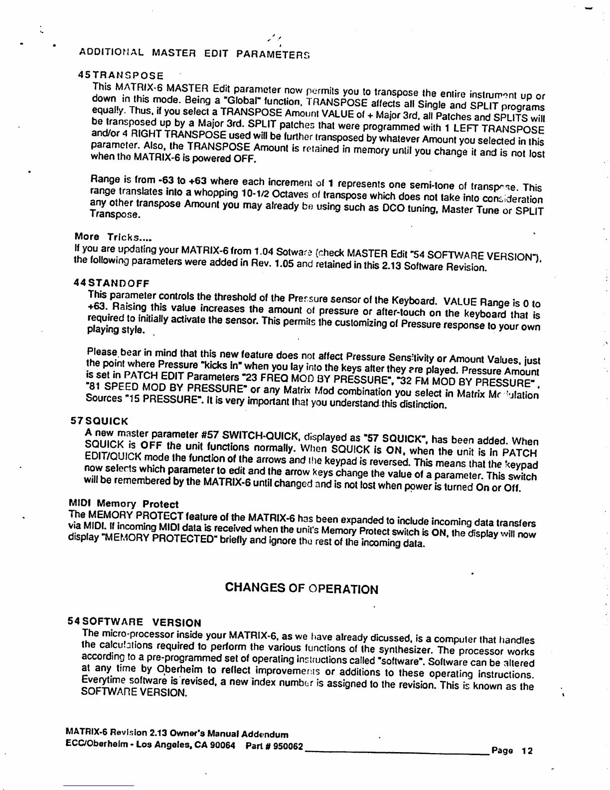 Oberheim Matrix-6 - ADDITIONAL MASTER EDIT PARAMETERS