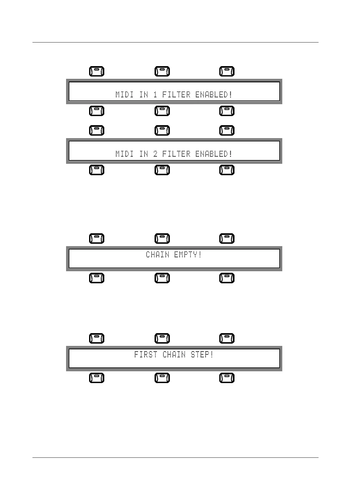 messages being received on the MIDI IN ports), the instrument reminds you that the filter