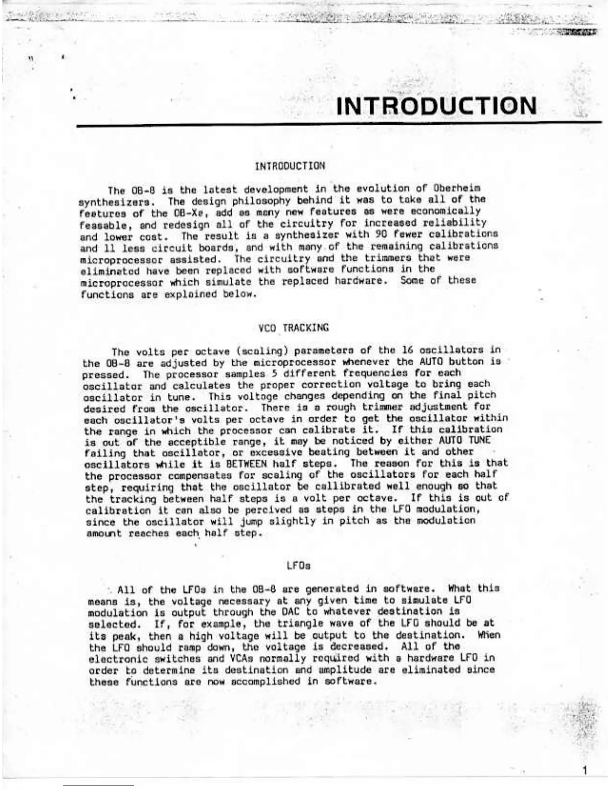 Oberheim OB-8 - Introduction to the Oberheim OB-8; VCO Tracking Calibration; Software-Generated LFOS