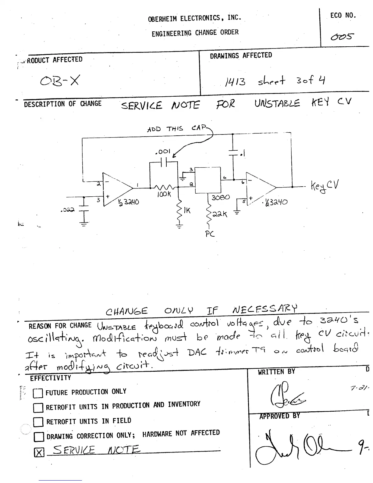 Oberheim OB-X - Service Notes; Unstable Key CV Service Note