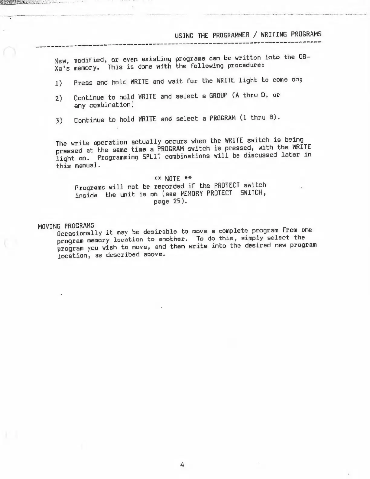 Oberheim OB-XA - Program Memory Management; Writing and Moving Programs