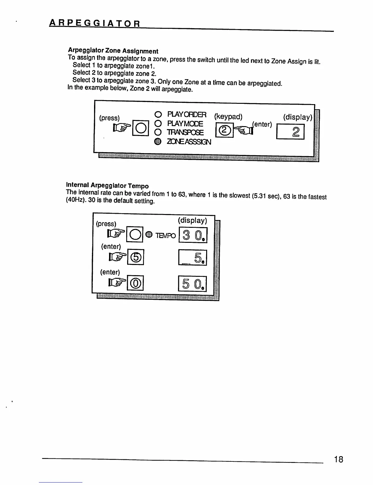 Oberheim XK - Arpeggiator Zone Assignment; Internal Arpeggiator Tempo
